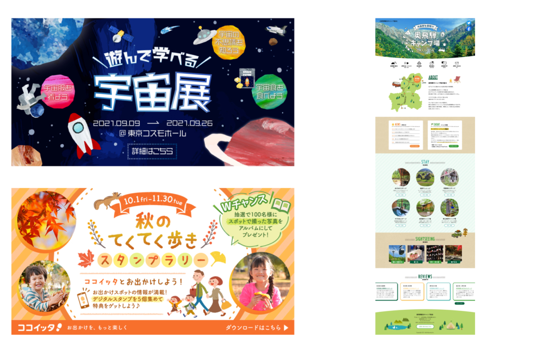 - ・Webサイトのデザイン・コーディングやUIデザインなどをおもに請け負う