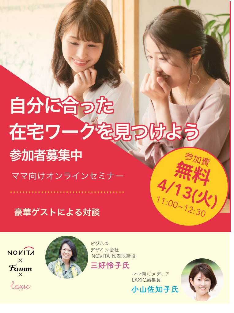 このような悩みの声に応えたい想いから、短い時間で在宅でしっかりと稼ぐことができるWebデザインを学べる「ママ専用Webデザイナー養成講座」を2019年3月よりFammが提供して参りました。